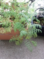 Notes : Plante qui a poussé spontanément dans un pot contenant une clématite, sur un balcon, à Strasbourg (en ville). Bien exposée, sol assez sec. Tiges d\'environ 50 cm. Je voudrais connaître son nom par curiosité et pour savoir si elle est allergène. Merci d\'avance pour votre aide.