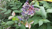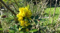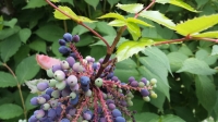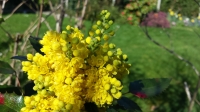 Notes : Il s\'agit de la même plante, 2 photos ont été prises en avril (fleur jaune), et 2 photos ont été prises en juin (grappe qui est devenue complètement violette, très appréciée des oiseaux). Les feuilles sont grasses et piquantes.