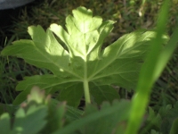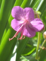 Notes : floraison en avril ; on dirait une fleur de la famille des géraniacées ; 5 sépales soudés en forme de calice